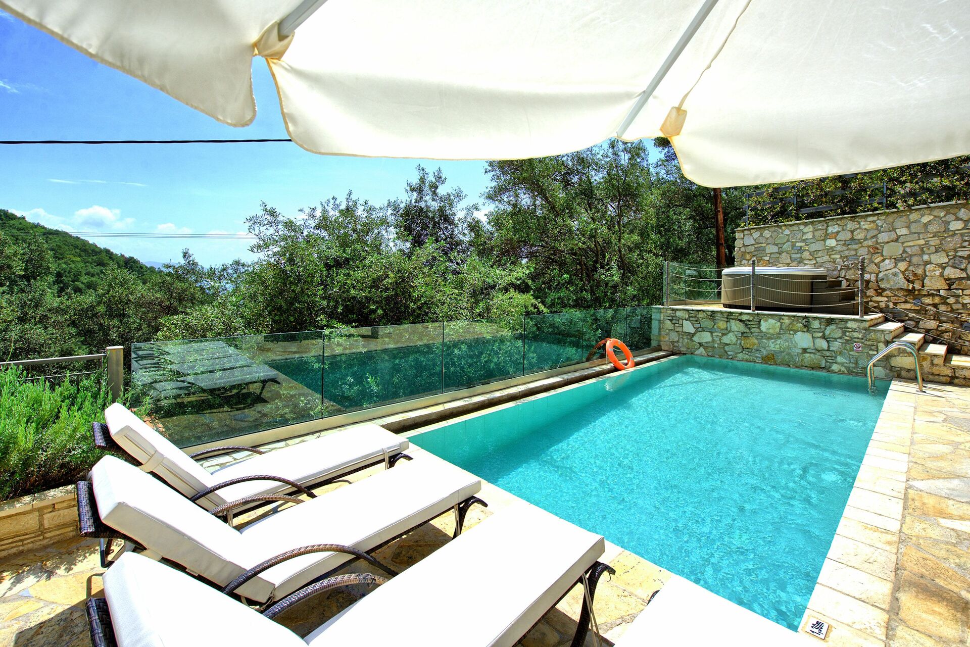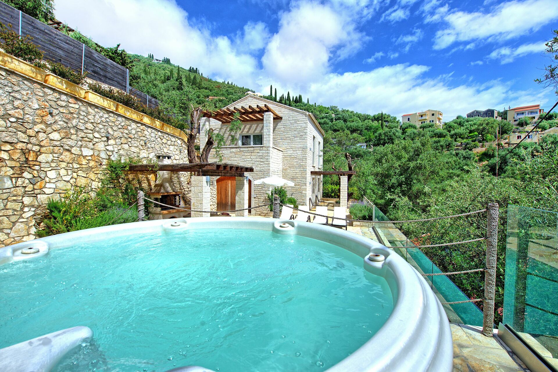 Great villa with perfect location; elevated on a hill, 10 min walking from a nice beach with great restaurant (Toula’s seaside). Bright and modern, with nice swimming pool and all amenities, finishing are OK, WIFI is slow… We would definitely recommend that place!