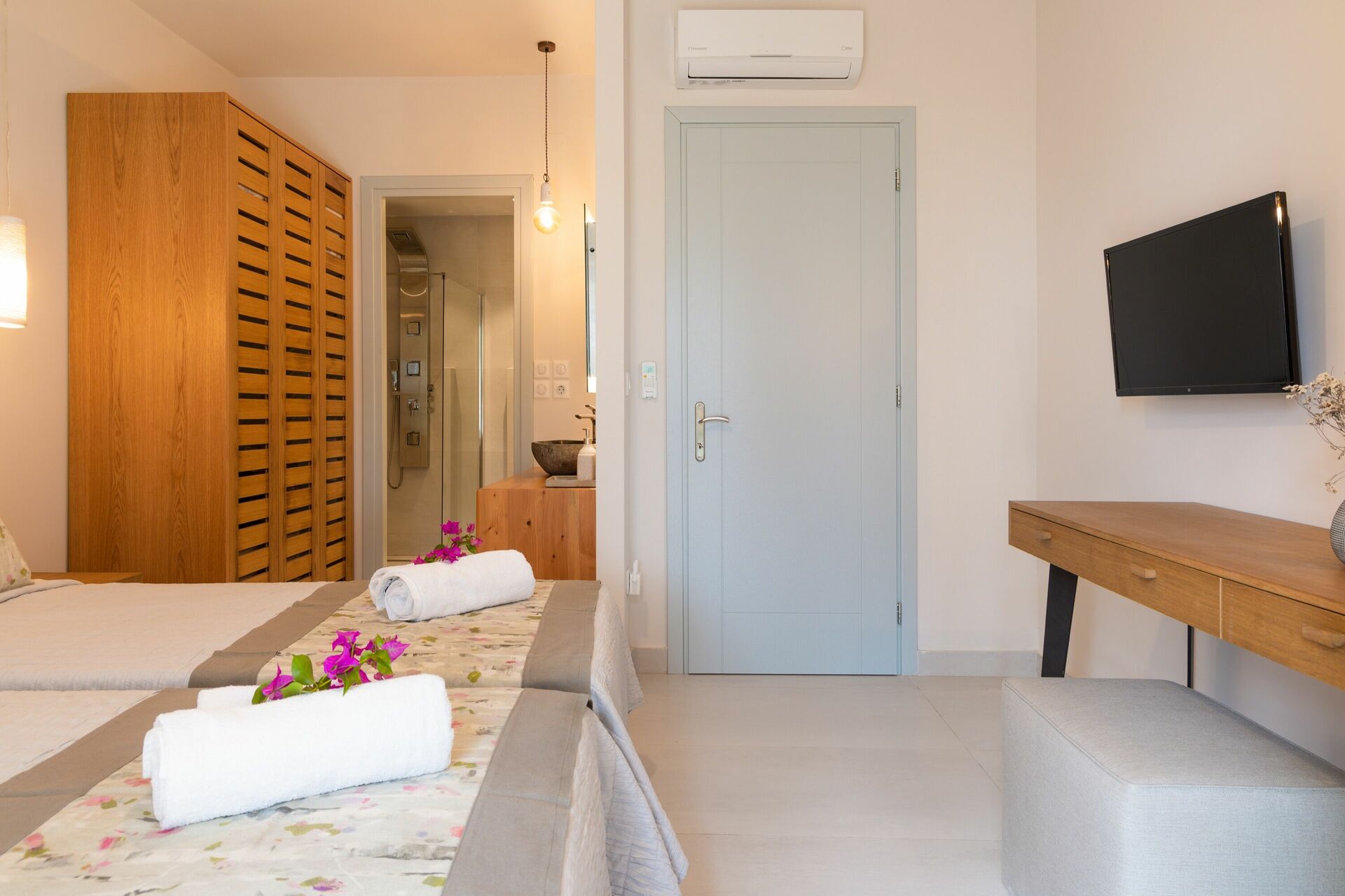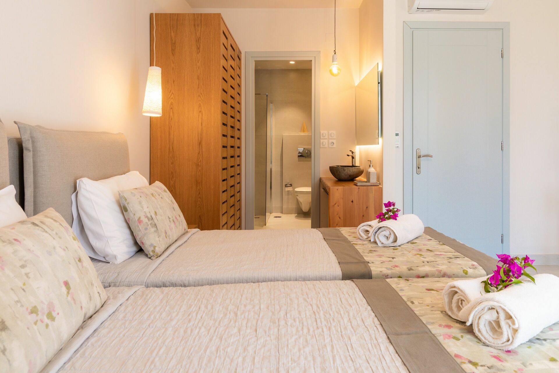 A lovely villa within walking distance of the beautiful Agni beach (bit of a hill on the way back up!) and it’s lovely restaurants. A really restful place, the pool area is great and a perfect view of the ocean from upstairs on the terrace. Comfortable beds and bedrooms downstairs, which meant we never needed to use the aircon despite it being 30 degrees most evenings!