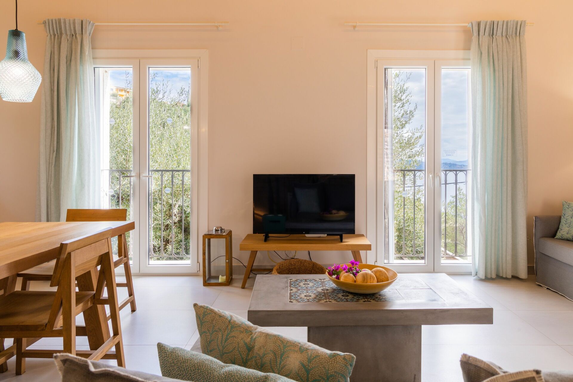 Villa parfaite pour 2 couples ! Une grande pièce à vivre de plain pied en arrivant à la maison, qui offre une vue époustouflante sur la baie d’Agni depuis toutes les fenêtres et la terrasse. En N-1 donnant sur l’extérieur directement par 2 grandes portes fenêtres les 2 chambres joliment décorées et équipées chacune de leur salle d’eau et wc privatifs. Vue sur la baie également depuis les chambres qui ont accès directement à la piscine et au jacuzzi. L’environnement est paisible, entouré d’oliviers sans être complètement perdu (d’autres habitations autour). Située à 45 mns de Corfou par une route magnifique qui longe la mer, c’est un point de départ idéal pour faire le nord de l’île qui suscite le plus d’intérêts… Des propriétaires charmants, croisés durant le séjour qui proposent des arrivées /départs totalement autonomes grâce à une boîte à clefs. Un hébergement qui a contribué en grande partie à la réussite de notre séjour !