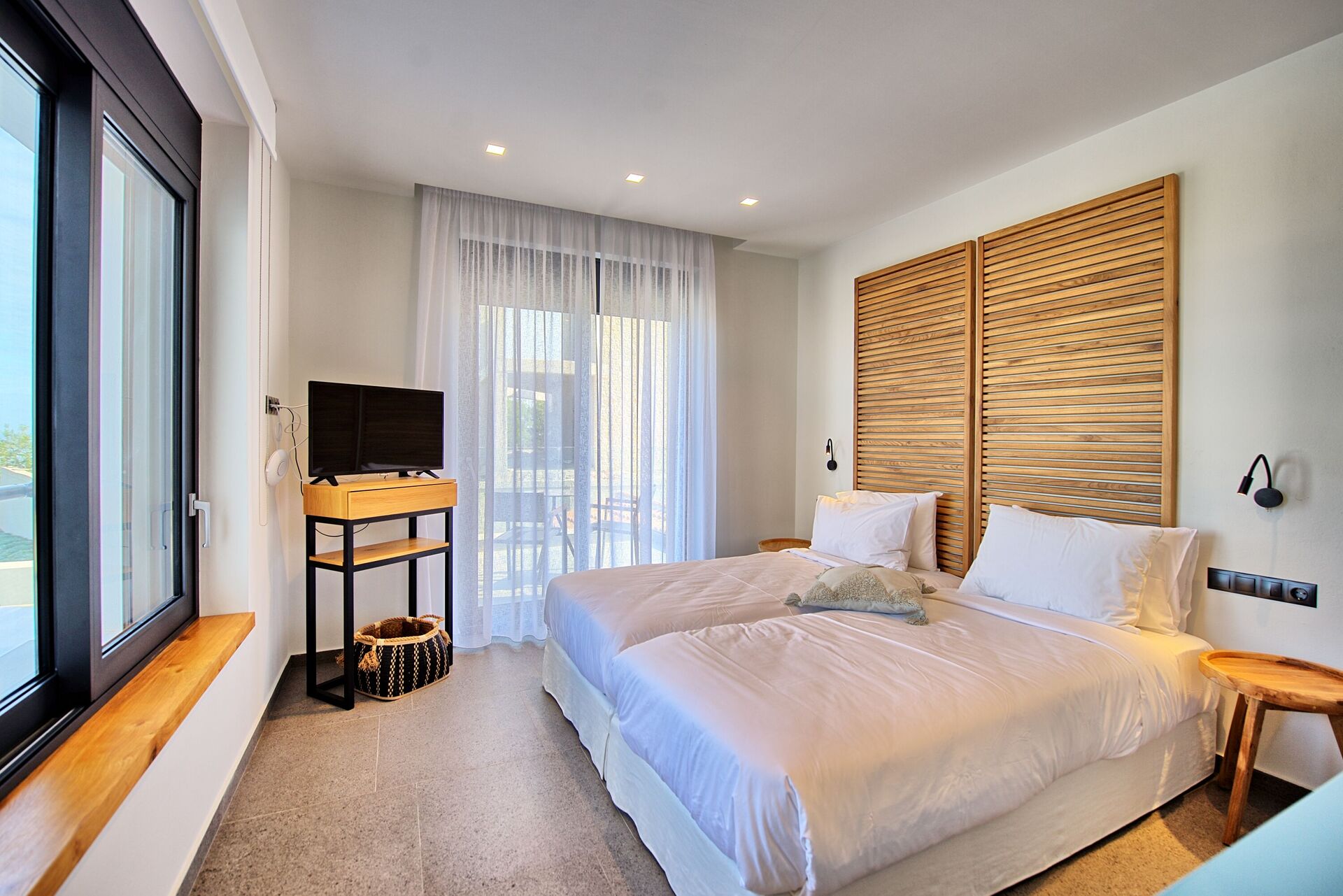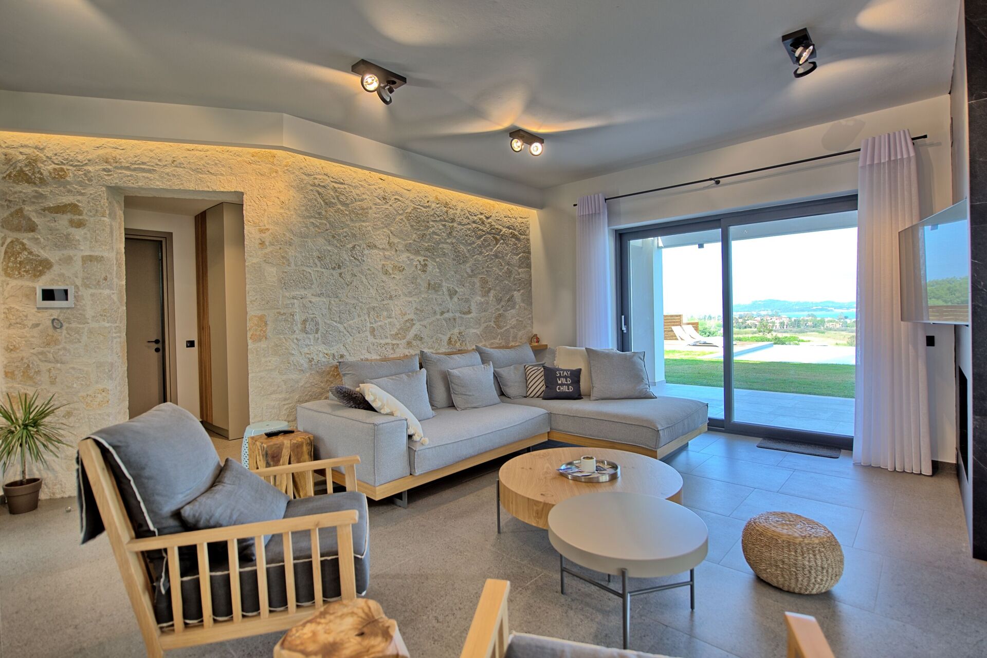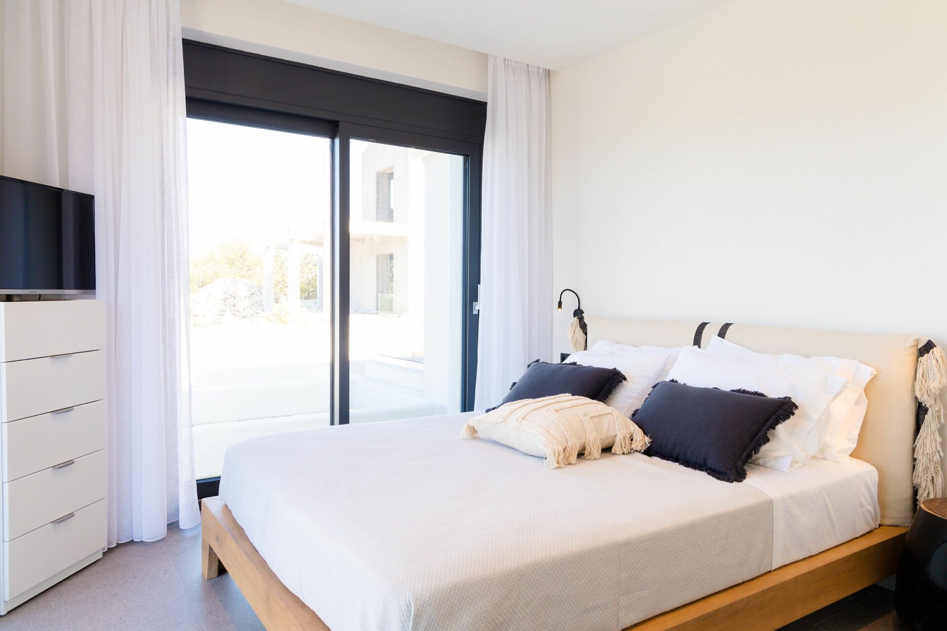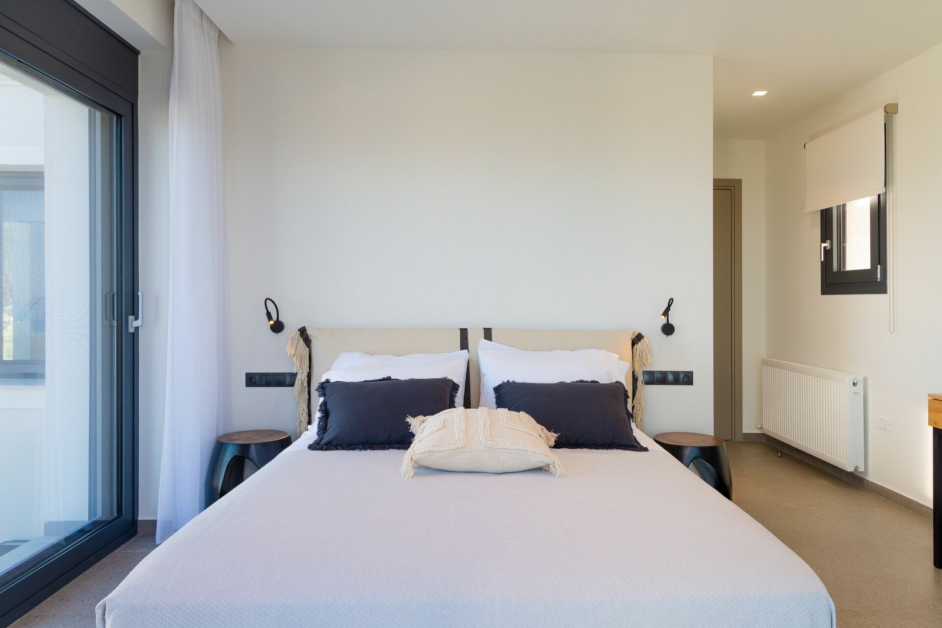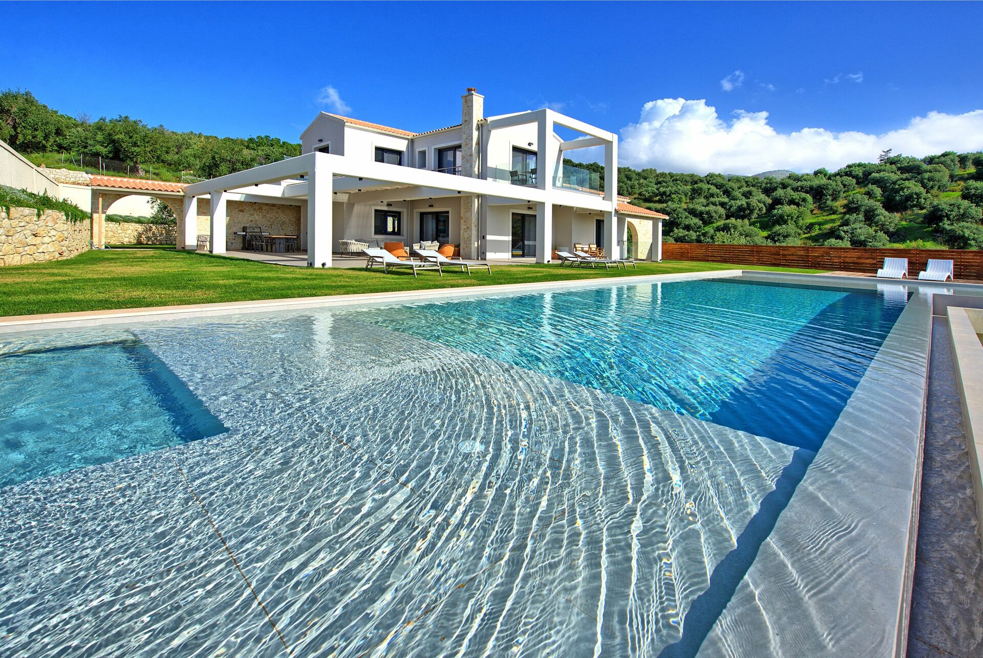 The house, unlike other villas we experienced in Corfu, was a modern masterpiece, with every detail being thought out. Electrical black out blinds keep the sun's brightness at bay in all 3 bedrooms, allowing you to wake at your own pace. AC so up-to-date and effective, it could be in a million dollar mansion in Miami. The house includes three en-suite double showers with great pressure, a full and modern kitchen, a large flat screen TV with HDMI plugin, open, light, indoor outdoor flow with screens on every window and door and a washer and dryer. We grilled on the BBQ, hung out on the bean bag chairs and outdoor dining table, and took constant dips in the pool as the sun beat down amidst the beautiful backdrop.