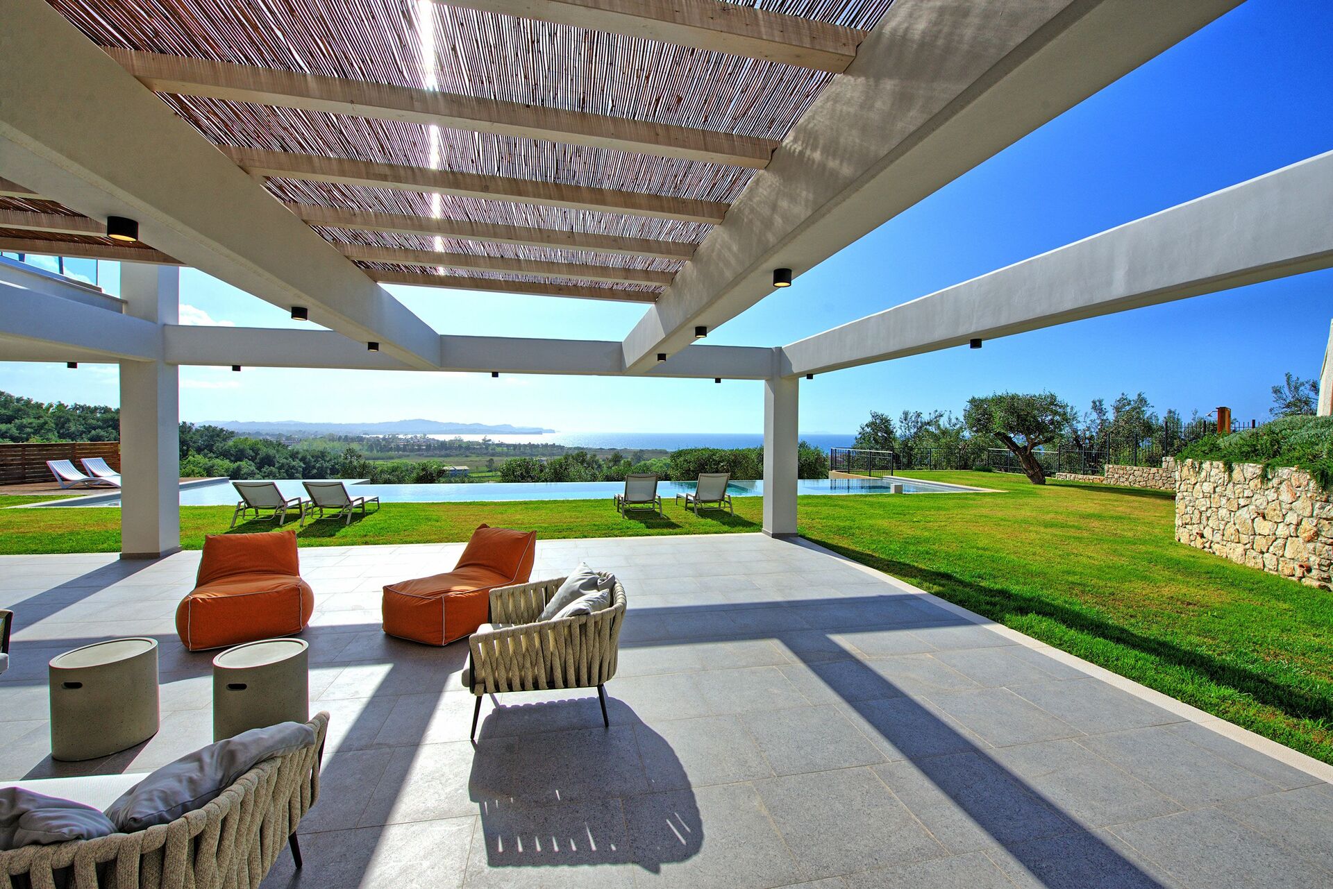 Det bästa med fastigheten är utomhusområdet: stora terrasser utrustade för uteservering, bekväma stolar för avkoppling och en stor privat pool med bubbelpool. Detta är den perfekta platsen att koppla av med vänner eller familj, njuta av den vidsträckta havsutsikten från poolen eller smutta på en cocktail vid solnedgången omgiven av fullständig lugn och avskildhet.