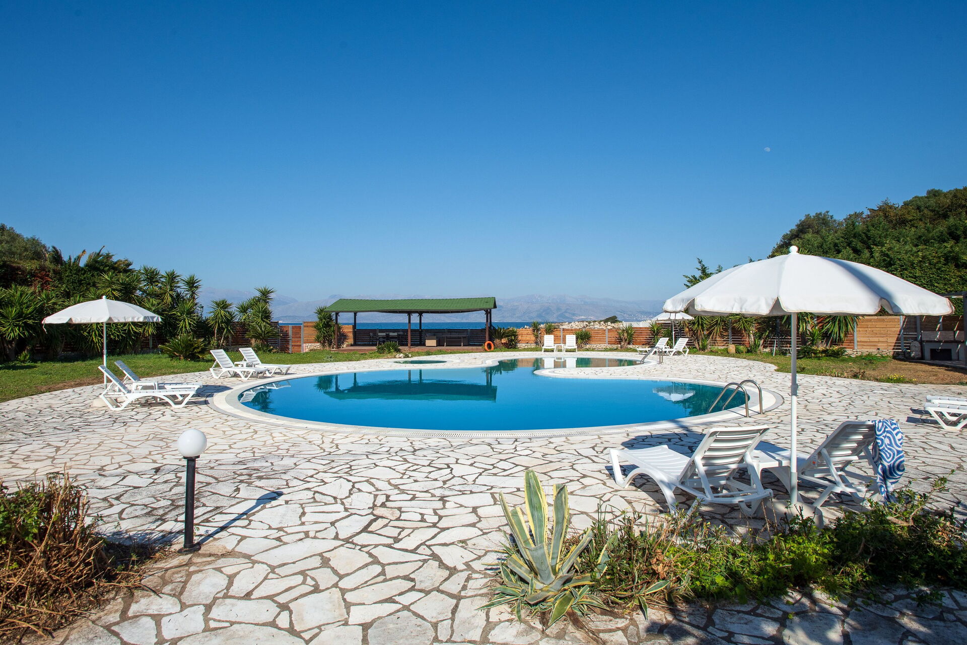 Trevligt semesterhus med privat pool bara några steg från havet och stranden San Spyridion på Korfu. Huset har ett strategiskt läge nära tavernor, caféer och minimarknader.