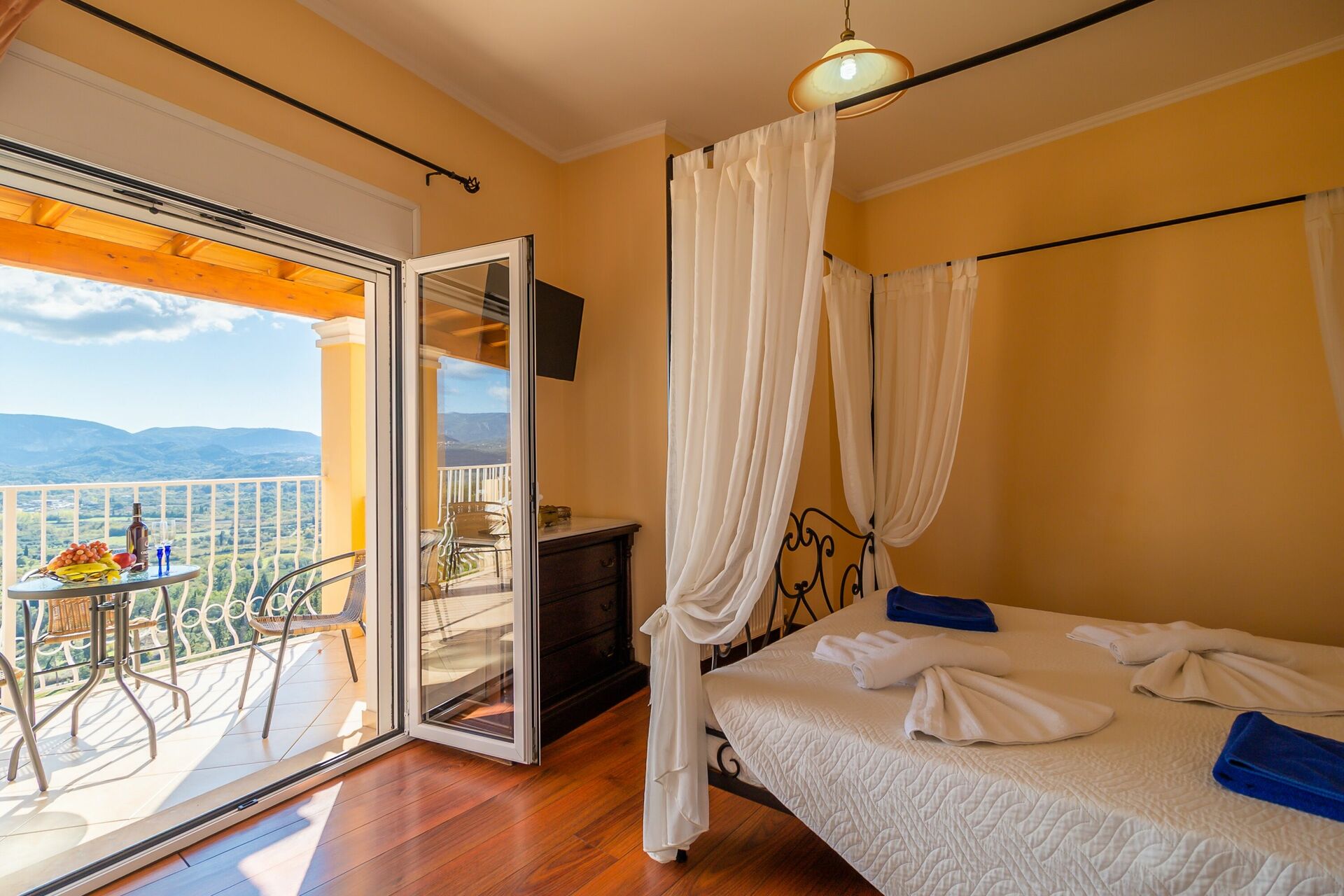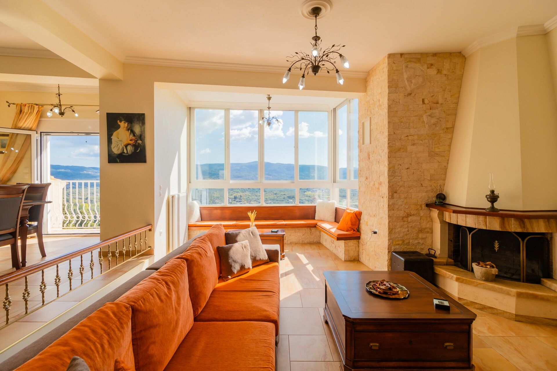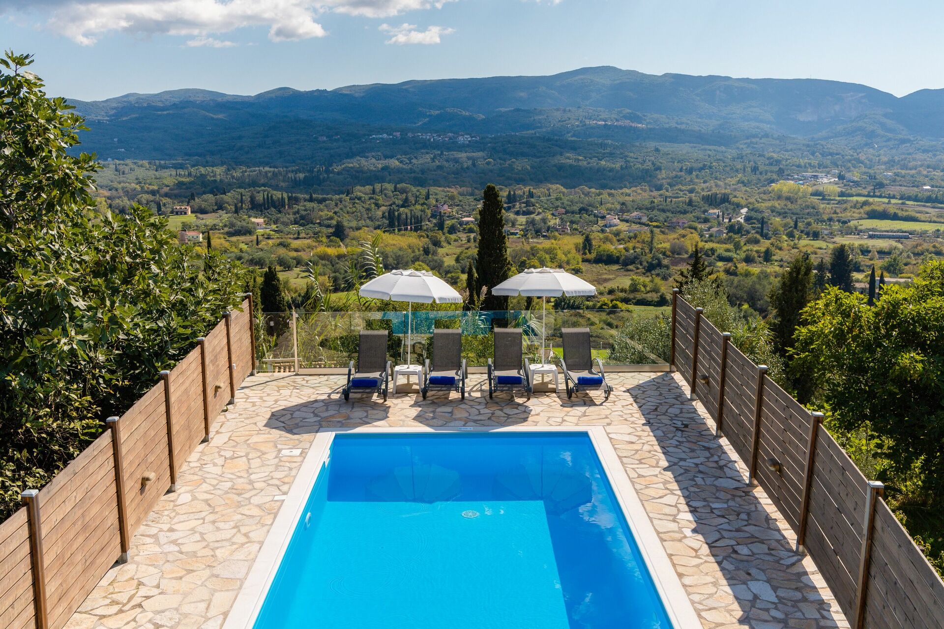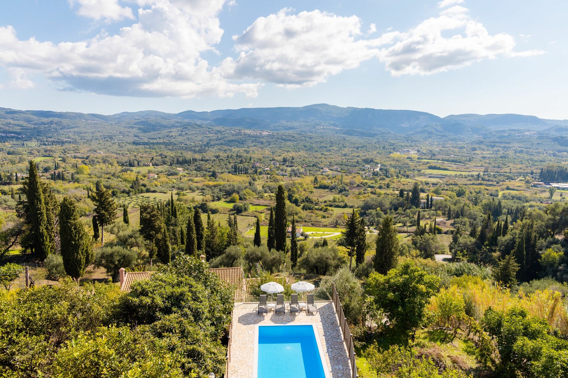 Fastigheten ligger inåt landet, bara 8 km från havet och från byn Sidari. Tack vare de 5 sovrummen och de gemensamma utrymmena finns det totalt plats för 9 gäster. Huset är smakfullt inrett och utrustat med all slags komfort för att erbjuda gästerna en bekväm semester.